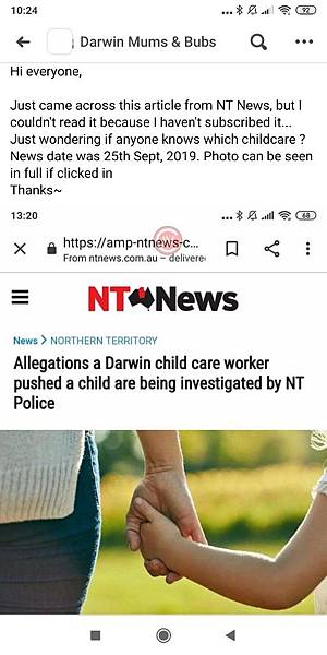 It has been a month since my kid stopped going childcare. I keep looking for new chuldcare, but feel very frustrating that not much info. could be found on the internet...all the google reviews for each childcare are only 5 star ones left, and yeaterday I just found this article from NT News, I couldnt read it because Im not the mamber. So I post the news to Darwin mums and bubs, asking if anyone knows which childcare that was. Soon I got the answer and also start getting interesting...