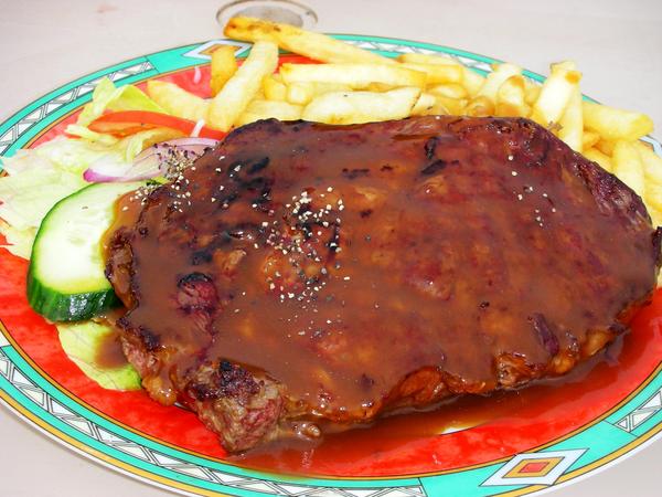 售價十四點九大洋的大排檔牛排,還可指定熟度呢,不錯嫩~