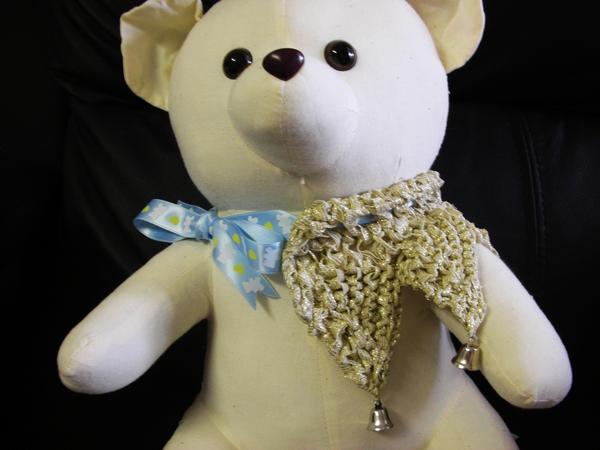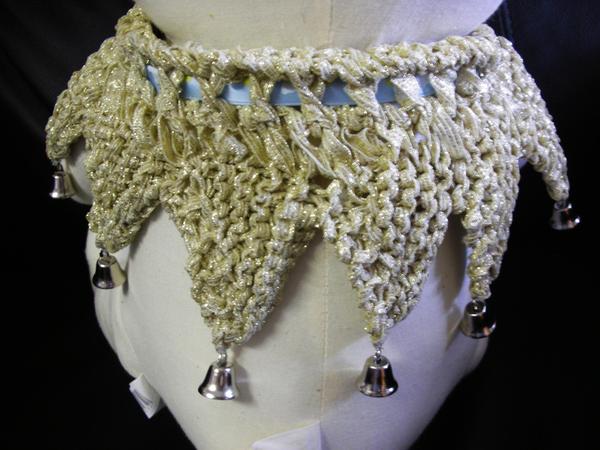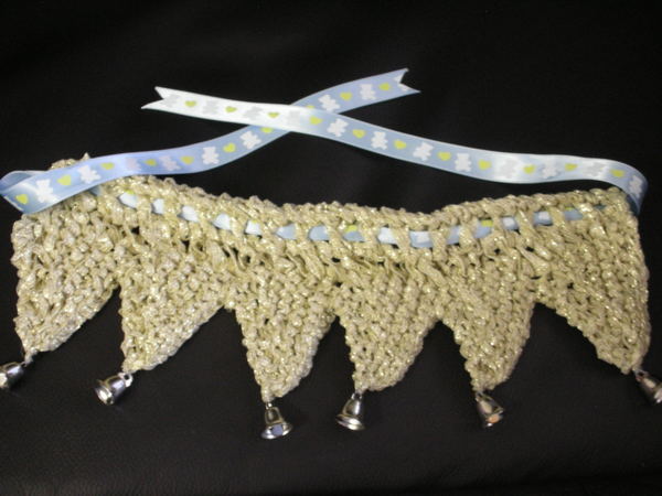 前幾天買了一本寵物主題的編織書,裡面大多是些一兩天就能完成的可愛小物,其中有一條領巾,我一眼就覺得非常適合朋友家中的美麗藍眼貓,總共也只花了三個晚上,就完成了全部的編織與裝飾,非常俗艷亮眼的金色鋸齒狀領巾,再以銀色小鈴鐺縫綴,最後加上個襯托藍色水汪汪眼睛的緞帶,希望朋友跟她的喵喜歡~
