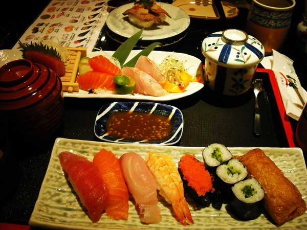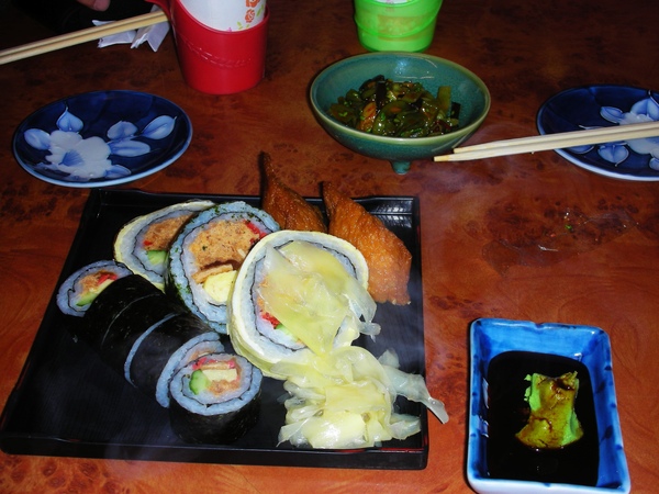 講到日本料理,乾脆把乙味屋也貼上來吧。先來個開胃菜(比較像是想要先用便宜壽司填飽肚子~)這間挺貴的,在夜市(饒河還是通化?)附近的狹窄小店面,價錢卻跟裝潢雅致的玄海有拼!