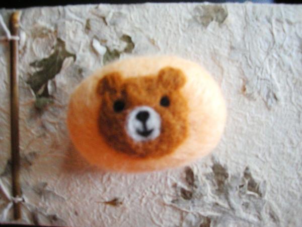 這個是用羊毛氈專用模戳出來的蝴蝶,模子有點太大,戳了蝴蝶之後,好像也沒多餘的空間做其他裝飾了。