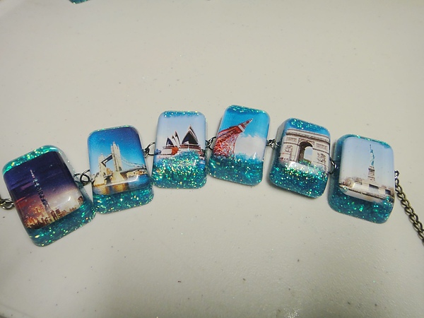 還有後來第二批做的世界地標手鍊。從右到左分別是:紐約、巴黎、東京、雪梨、倫敦跟~台北101!(總是忍不住想抓緊任何機會推銷台灣美景啊~)
